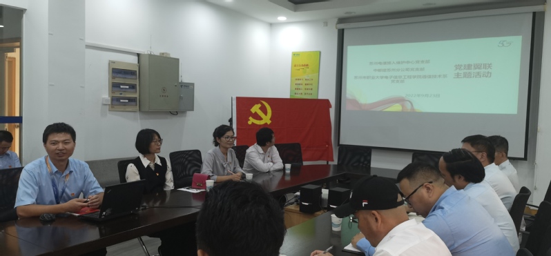 9月23日下午,开云app官网入口下载电子信息工程学院通信技术系党支部与苏州电信接入维护中心党支部、中邮建苏州分公司党支部联合开展“党建翼联”活动,通信支部书记周燕、党员邢亚从、张佳永参加了此次活动。